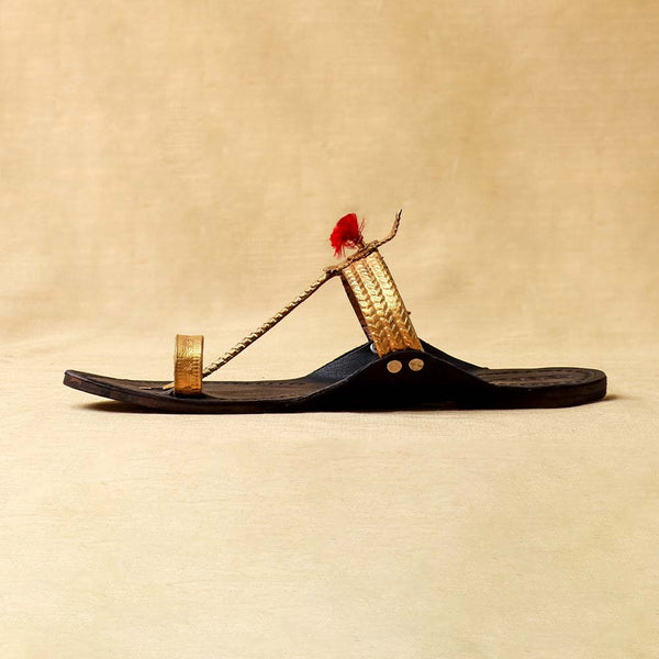 Black with Gold Accents – Women’s Colorburst Kolhapuri Chappal