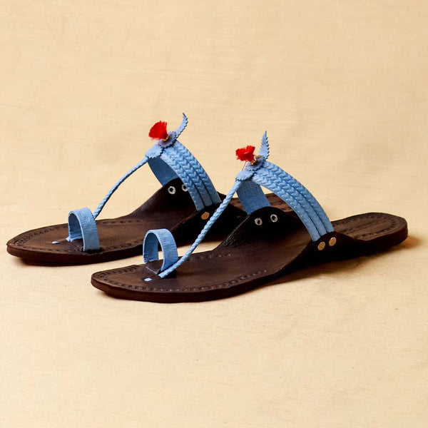 Classic Black Sky Blue Accents – Women’s Kolhapuri Chappal