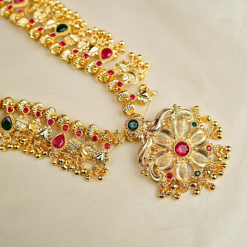 Type - Long Necklace set crafted in traditional Kolhapuri design, ideal for festive, bridal, and ethnic occasions.