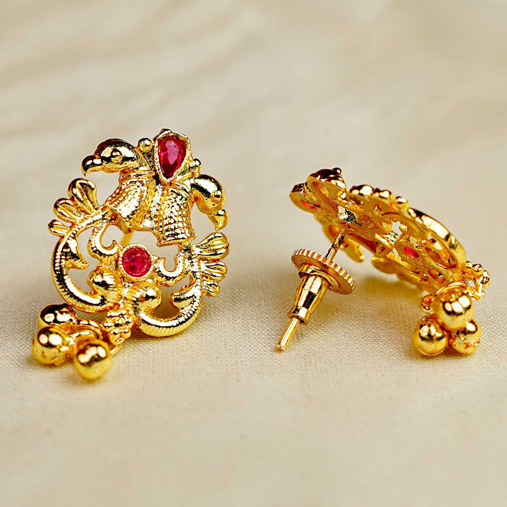 Lock Type - Necklace comes with an Adjustable Gonda (Dori) closure, whereas Earrings come with a matching pair of Golden Metal Studs