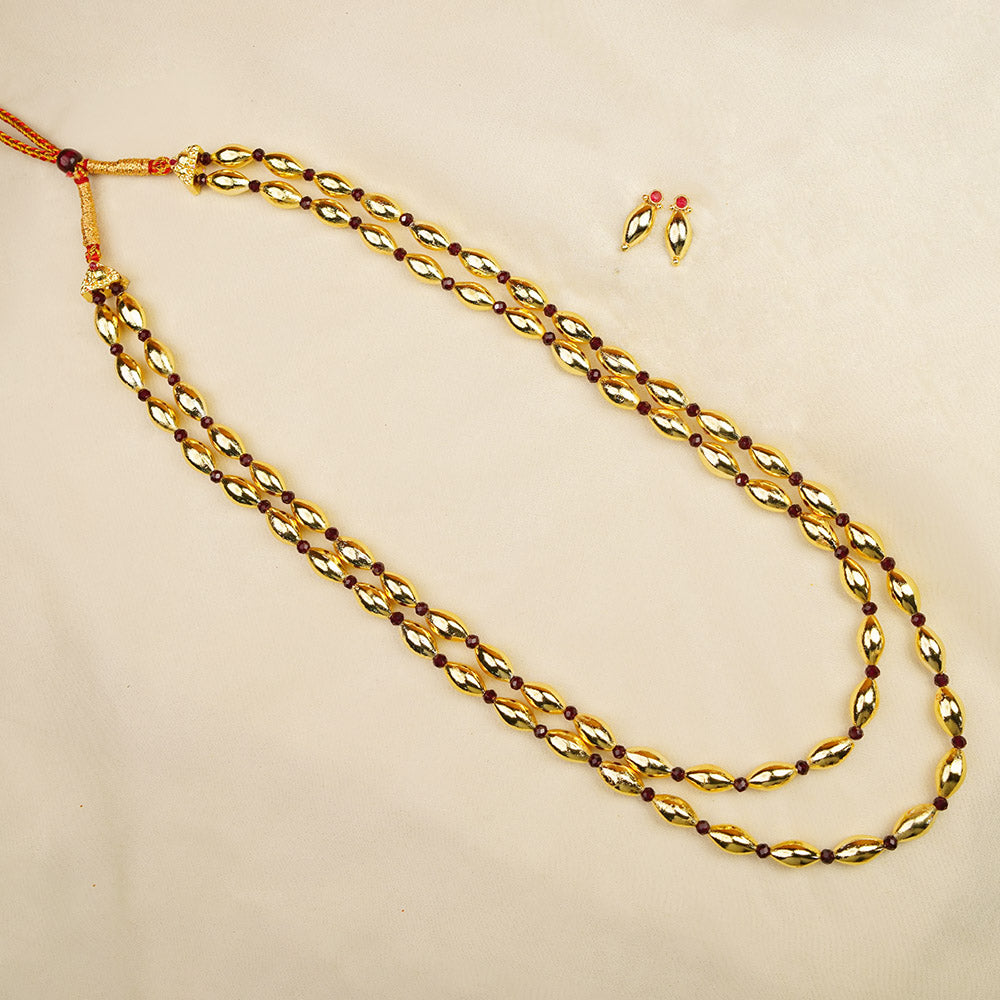 Double-line Bor Maal crafted with polished golden beads. A statement of cultural pride.