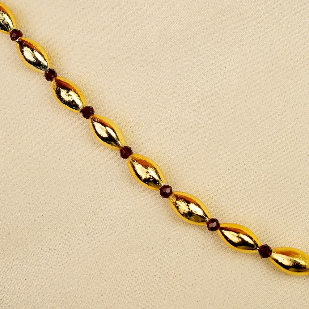 Traditional single-line Bor Maal with golden oval beads and red accents. Subtle and stylish.