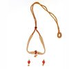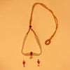 - Although there is no distinct pendant on the necklace, it features a panadi-shaped arrangement of ruby crystal stones at the center.