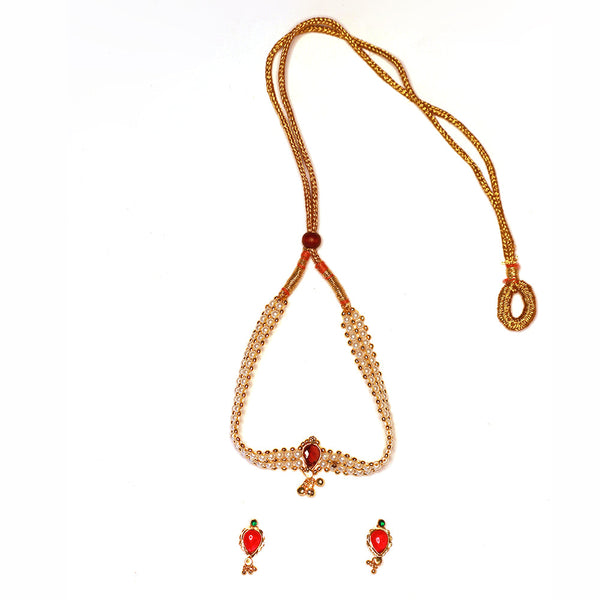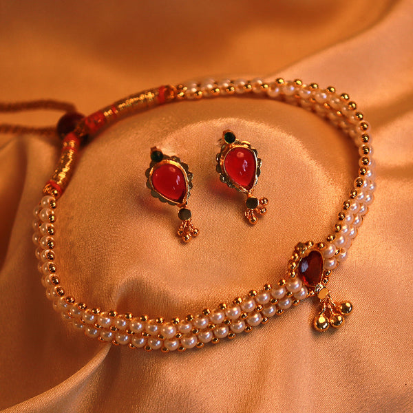Radiate elegance with our Moti Thushi Necklace. It's lustrous pearls and intricate design makes it a stunning accessory, perfect for adding sophistication to any attire.