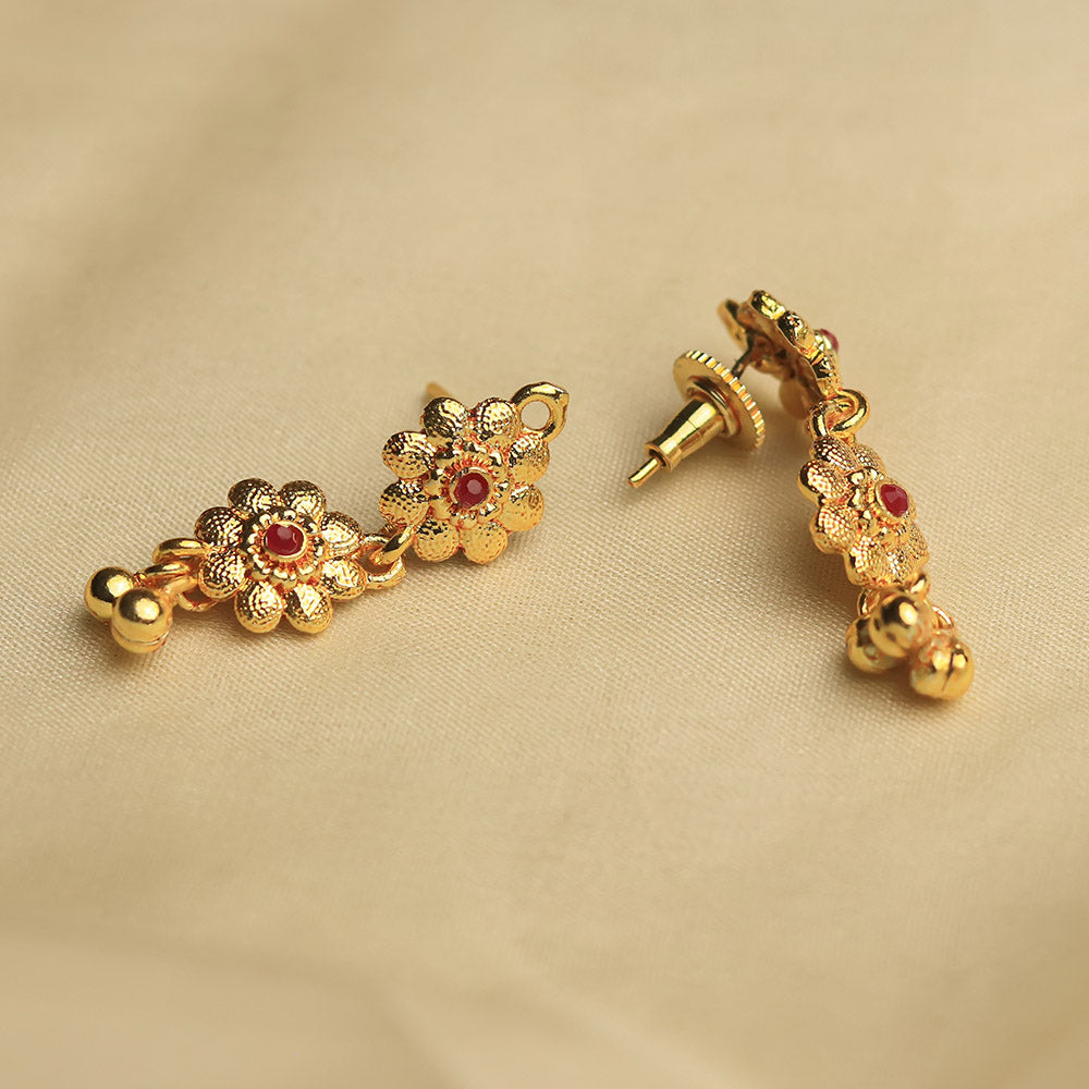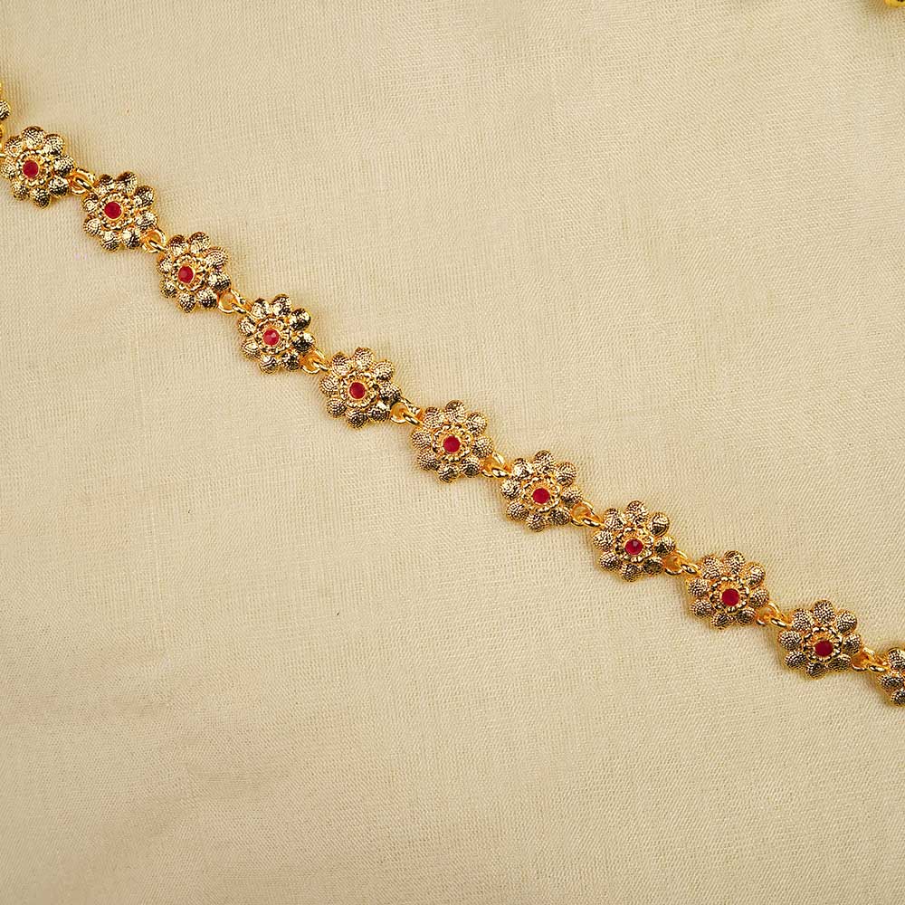 Fresh and elegant single-line Bakuli Haar. Delicate floral motifs crafted with ruby accents.