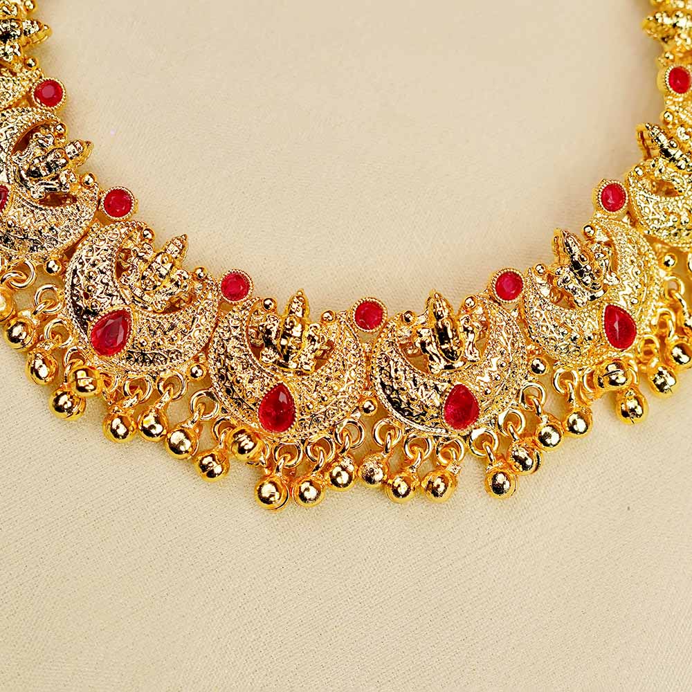 Lock Type - Necklace comes with an Adjustable Gonda (Dori) closure, whereas Earrings come with a matching pair of Golden Metal Studs