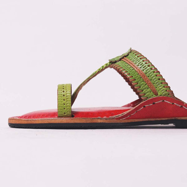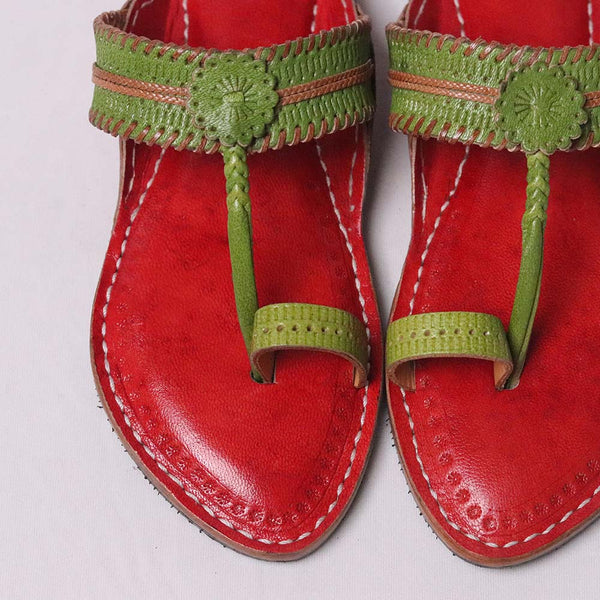 Floral Delight Red-Green – Women’s Kolhapuri Chappal