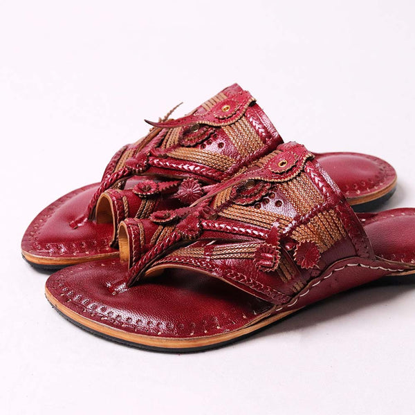 These Kalapuri's Kolhapuri chappals are thoughtfully designed to complement traditional attire and cultural occasions. The soft leather and cushioned sole offer comfort throughout long festive gatherings or ceremonies. The anti-slip TPR sole ensures steady footing, even during extended wear. Lightweight yet durable, they beautifully preserve authentic craftsmanship while enhancing the elegance of traditional Indian outfits.