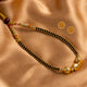- All the beads are made from brass alloy and are gold-plated. All the beads are closely hand-woven in the necklace with good-quality thread to keep them intact and in place. There are five threaded(Pach padari)layers of black beads on one side of the necklace.