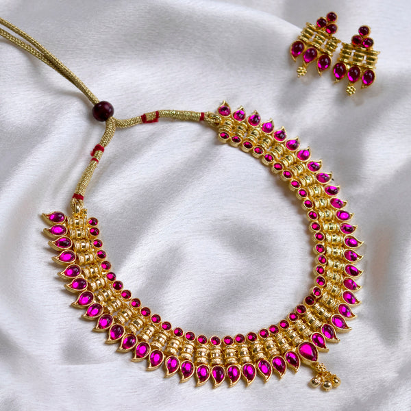Gold Plated Pink Stone Choker Necklace