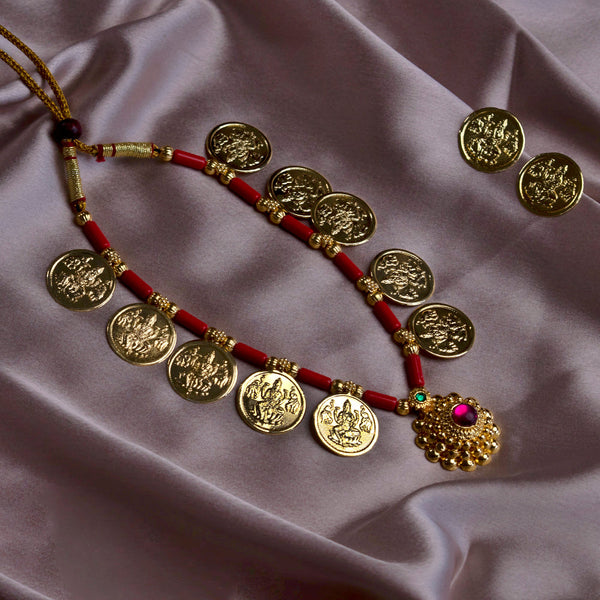 Powala Necklace with Mahalaxmi Coin and Pendant