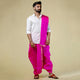 Cotton-silk blend – Soft, breathable fabric that drapes effortlessly with a subtle sheen for festive and formal occasions Ready-to-wear fit – Pre-stitched dhoti with matching uparna, designed for hassle-free dressing