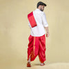Red Readymade Dhoti & Uparna Set – Traditional Cotton‑Silk Heritage Wear