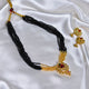 - All the beads are made from brass alloy and are gold-plated. All the beads are closely hand-woven in the necklace with good-quality thread to keep them intact and in place. There are five threaded(Pach padari)layers of black beads on one side of the necklace.