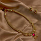 - The necklace displays an oval flower-shaped pendant, measuring 2 cm by 2 cm, with a captivating Ruby Crystal beautifully set at its center.