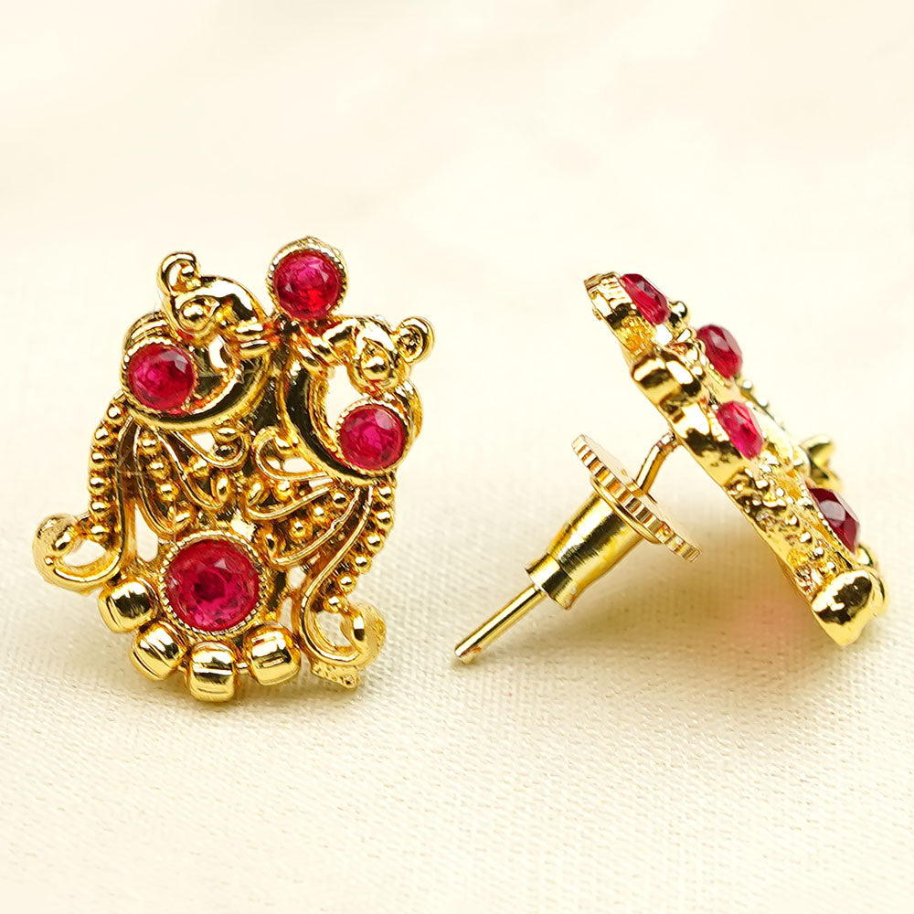Lock Type - Necklace comes with an Adjustable Gonda (Dori) closure, whereas Earrings come with a matching pair of Golden Metal Studs