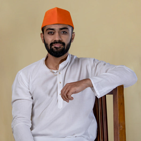 Traditional Orange Velvet Topi – Festive Velvet Embroidered Cap