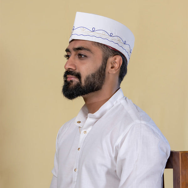 White Embroidered Polyester Topi – Traditional Embroidered Cap
